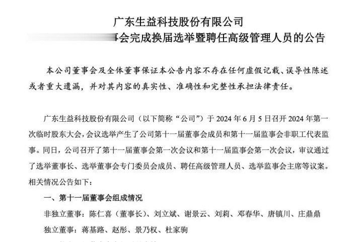 6月6日,生益科技发了个公告:带领公司打了三十多年江山的老董事长刘述峰,因为年龄原因,光荣退休了。同时,公司董事会选出了新董事长——陈仁喜。